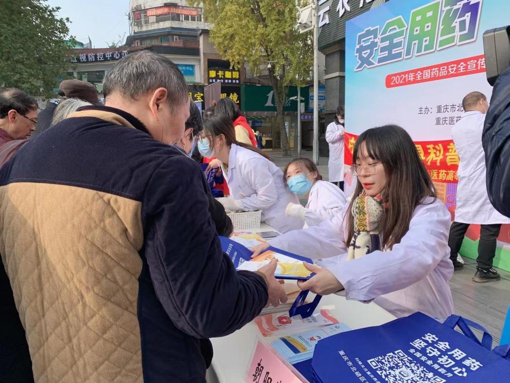 11月25日上午,北碚区在作孚广场开展“安全用药 坚守初心”全国药品安全宣传月暨过期药品回收志愿服务活动,为市民讲解安全用药常识,增强公众安全用药意识,提高全社会安全用药水平,服务百姓健康行动。