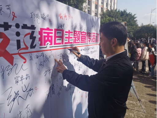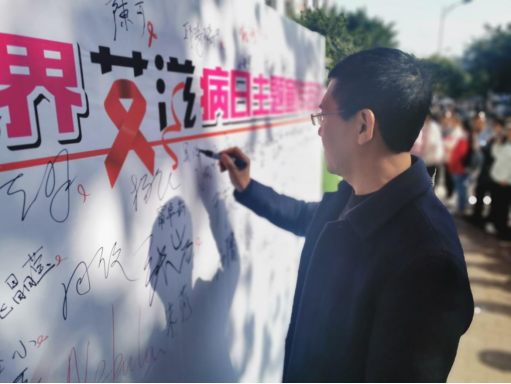 党委书记吴海峰莅临防艾主题宣传现场予以指导