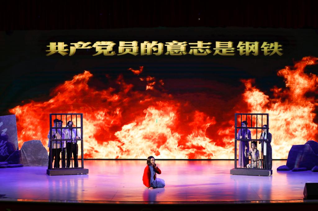 展演活动分为上下两大篇章,上篇以《我的修养要则》《红色女特工》《沁园春·雪》这三个剧目向现场观众讲述了伟大红岩精神诞生的故事;下篇以《我们没有玷污党的荣誉》《傲雪红梅》《绣红旗》这三个剧目为大家介绍了重庆解放前夕在渣滓洞、白公馆英勇牺牲的烈士们可歌可泣的英雄壮举。演员由红岩联线发展管理中心的讲解员和管理后勤人员担任,以饱满的情感,抒发了对老一辈无产阶级革命家和先烈们的崇敬之情,通过讲、诵、展、演等形式,生动讲述了以毛泽东、周恩来为代表的老一辈无产阶级革命家在革命年代的奋斗历程及众多被关押在渣滓洞、白公馆的中国共产党人,经受住种种酷刑折磨,不折不挠、宁死不屈所凝结成的“红岩精神”。尾声用习近平总书记的殷殷寄语,对该主题教育进行升华。最后全场齐唱《歌唱祖国》,嘹亮的歌声表达了师生们爱党爱国的情怀。