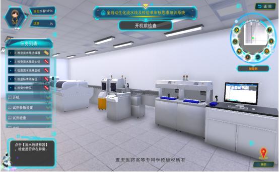 医学技术学院教师利用自主开发的基于网络平台的医学检验虚拟仿真软件辅助教学。利用逼真的虚拟临床医学检验检测环境,让学生可以像在医院真实环境中一样认知各种仪器结构,完成各种临床常规检测项目的测定,并完成相应的数据输出。