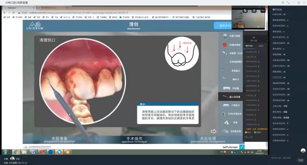 临床学院教师利用口腔虚拟线上教学训练系统辅助《口腔内科学》课程教学。系统综合运用交互式多媒体与虚拟现实技术,将口腔医学实验情景、过程以及结果真实化,从而使学生的体验更具有真实感。