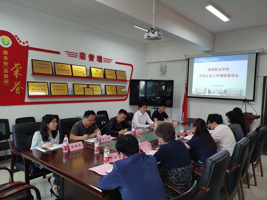 4月25日下午,市教育评估院职成教评估所黄承国所长一行5人到校进行高等职业学校评估认证工作调研座谈,学校副校长何坪、教务处处长兰作平、督导室主任杨红、相关院部负责人及专业带头人参与了座谈。