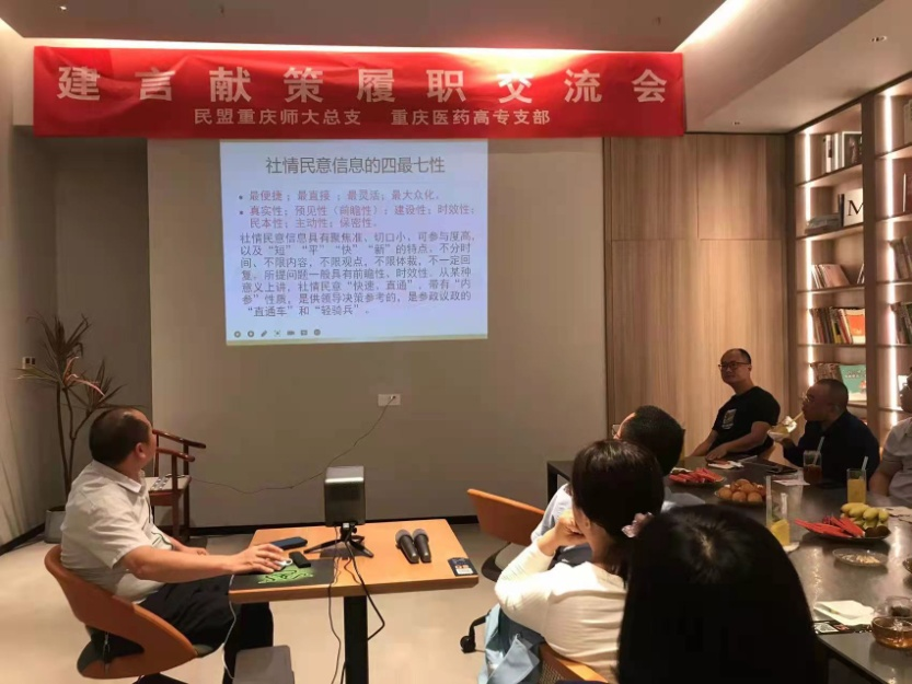 为了进一步加强自身建设,提升民盟成员建言献策及反映社情民意的水平,5月21日下午,民盟重庆医药高专支部联合民盟重师总支开展了建言献策履职交流会。参加活动的有医药高专支部和民盟重师总支共20余位盟员。