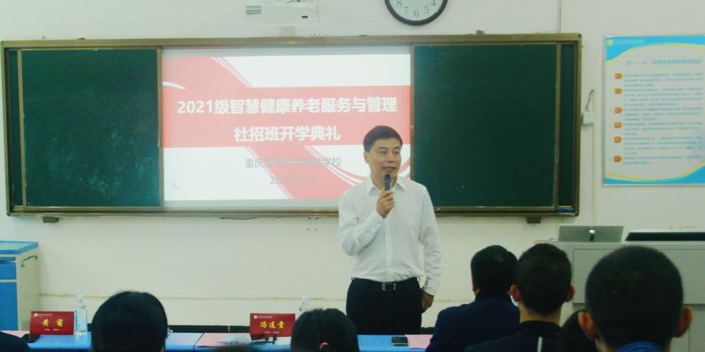 5月27日,我校2021级智慧健康养老服务与管理专业(社招班)顺利开班。学校校长冯连贵,党委副书记黄萌、学生处处长陈立书,护理学院党政领导、教师代表以及社招班21名学生参加开班典礼。