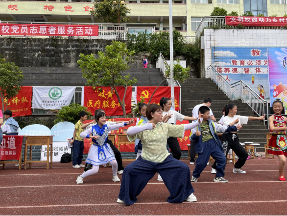 关怀帮扶学生,开展爱心捐赠。学校为中心小学送去了40套书包、文具盒、钢笔等系列学习用品,80套课外书籍、40套棋类等文体用具。当党员志愿者把爱心捐赠物资交到学生手上时,同学们格外开心,露出灿烂的笑脸,胸前的红领巾格外鲜艳,大家纷纷表示一定不辜负叔叔阿姨的期望,发奋学习,建设家乡。同学们身着土家族传统服装,跳起活泼欢快的舞蹈,热烈欢迎学校党员志愿者的到来,并为他们献上鲜艳的红领巾。姜理华代表学校致辞,在六一儿童节来临之际,重庆医药高专党员志愿者来到中心小学,目的是携手桥头镇助力乡村振兴,关爱少年儿童,促进健康成长,大力培养堪当民族复兴大任的时代新人。