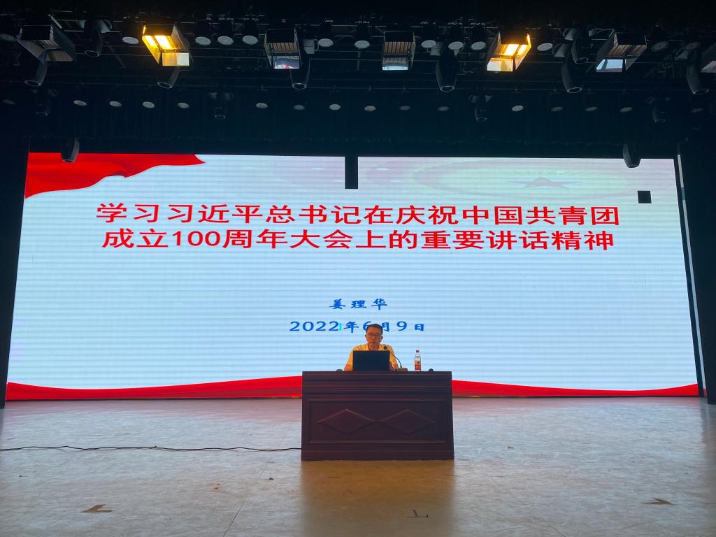 6月9日,澳门电子pg游戏官网第五期青马工程培训班在学校学生活动中心开课,学校党委副书记黄萌、副校长姜理华为青马班成员现场授课。