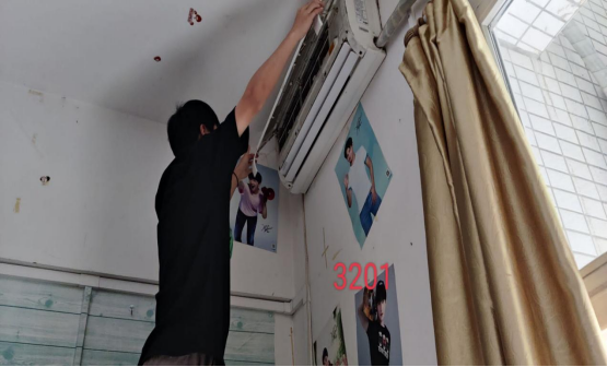 前期,劳动课教研室和学生处的老师,学生公寓自治管委会的干部同学开展联合学习,并邀请新大正物业人员示范讲解拆洗空调的操作要领和注意事项,由自治管委会同学拍摄操作步骤视频下发全校各班,并组织同学们认真观看和学习空调清洗的操作流程和安全操作事项。活动中,参与的同学们积极性很高,寝室成员全部行动起来,有负责扶梯子的、有负责拆卸空调外壳的、有负责清洗滤网的……大家分工协作,不一会儿功夫,整个寝室的空调就变得焕然一新了。