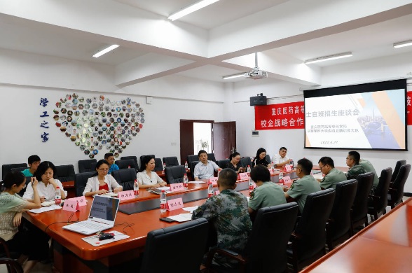 6月27日下午,陆军军医大学边防卫勤训练大队张椿大队长一行6人到校,就我校2022年护理军士班、康复军士班人才培养工作进行研讨。学校校长冯连贵、副校长何坪出席会议,会议由护理学院院长唐万珍主持。临床医学院及护理学院领导、护理专业带头人、康复专业带头人、班级辅导员等参加会议。