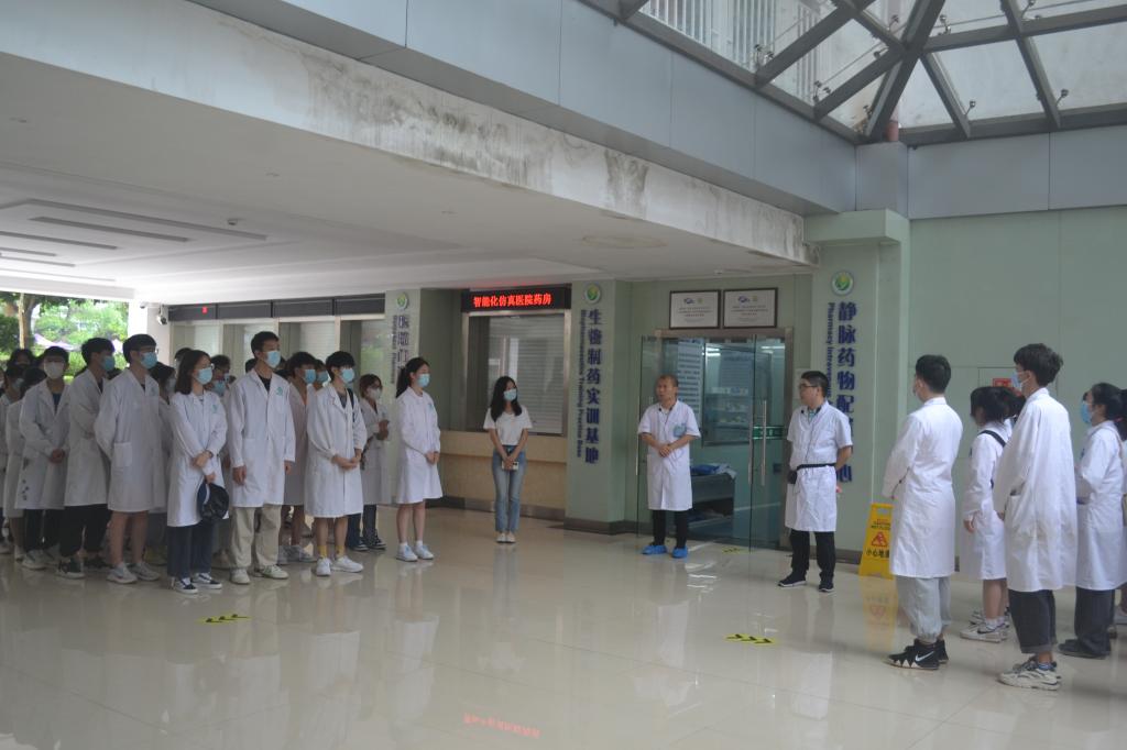 学校药学院(中药学院)副院长杨宗发、药学实训车间老师马杨作为指导老师,详细介绍了国家级药学生产性实训基地历史沿革、建设情况及目前运行情况。同时对固体制剂车间、液体制剂车间、生物制药车间、静脉药物配制中心和临床药物安全评价中心等相关设备逐一介绍设备原理、操作演示,并对每位学生提出的问题细心解答。