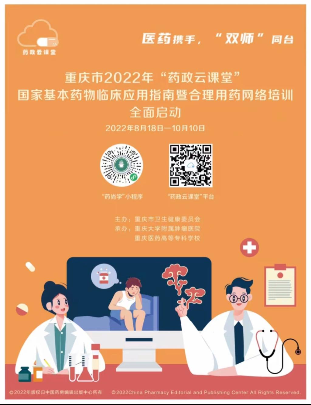 在重庆市卫生健康委员会指导下,由重庆大学附属肿瘤医院中国药房编辑出版中心和我校继续教育学院共同承办的2022年“药政云课堂”临床合理用药远程培训工作正在稳步推进。截至今年9月13日,“药政云课堂”累计实名注册人数已达10.38万人,全市参训率已达88.18%,达标率已达72.55%。