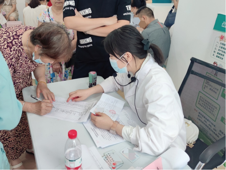 图1:2021年参加陈家桥社区疫苗接种服务工作的场景(图为陈玲珑同学)