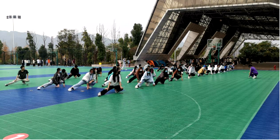 在严格遵守疫情防控的前提下,以任课教师为单位精准划定活动区域,精炼合适的教学内容,制定统一的教学流程。课堂上,以授课教师为主导,负责课堂教学实施及安全管理;以班长、体育委员、学习委员等班干部为引导,负责带领并演示教学内容、维持现场教学秩序,协同教学组织实施;以学生为主体,同学间互相提醒、纠正不足,在互帮互助的氛围中进行体育锻炼。