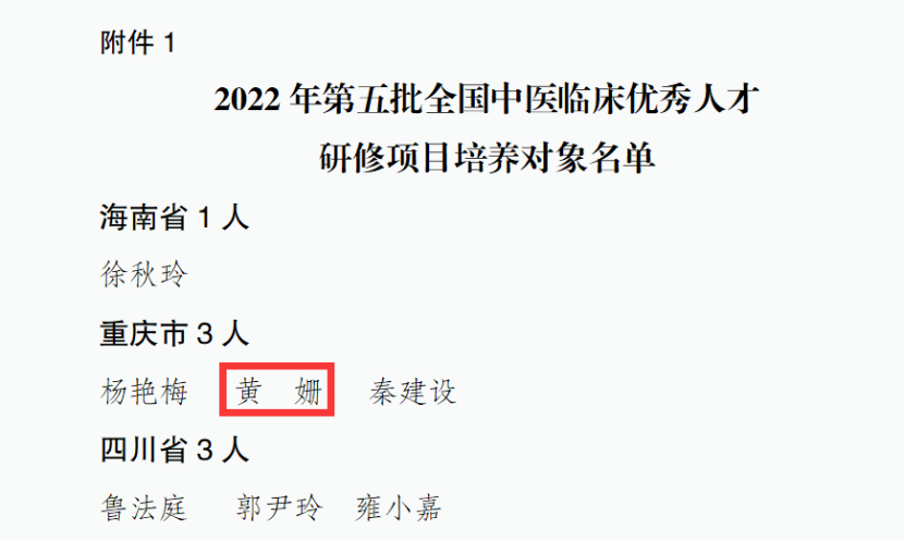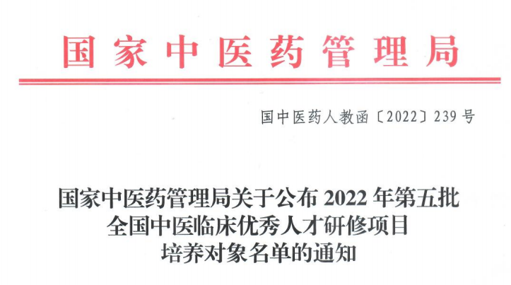 近日,国家中医药管理局下发通知,确定郑丰杰等100人为2022年第五批全国中医临床优秀人才研修项目培养对象,我校中医学院黄姗入选。