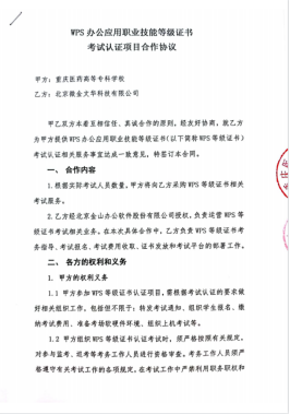 WPS办公应用职业技能等级证书考试认证项目合作协议