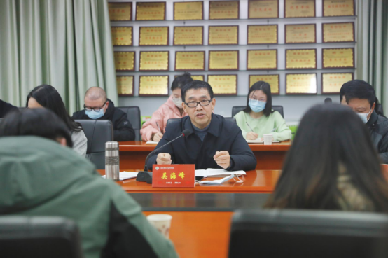 为全面贯彻落实党的教育方针,坚持党委书记带头讲思政课落实立德树人根本任务的工作机制,2月23日下午,校党委书记吴海峰以“抓实乙类乙管做好新阶段学校疫情防控工作”为题,在大学城校区南315会议室为师生代表讲“开学第一课”。党政办、组宣部、学工部代表,各院部(校区)党总支(直属党支部)书记、副书记,辅导员和学生代表现场聆听。