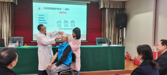 这场培训由护理学院外科护理教研室彭奇副教授、周娜主任两位主讲,急救科普志愿服务队4名大学生队员辅助教学,为政府接待办的40余名职工开展了心肺复苏、体外自动除颤仪的使用、气道异物梗阻解除---海姆立克法、外伤常用救护技术等急救知识培训。培训采取了讲---演---练相结合的互动式教学法,使培训对象全面了解常用急救技能的操作方法,现场也安排培训对象在模拟人上进行充分演练,保证了培训效果。