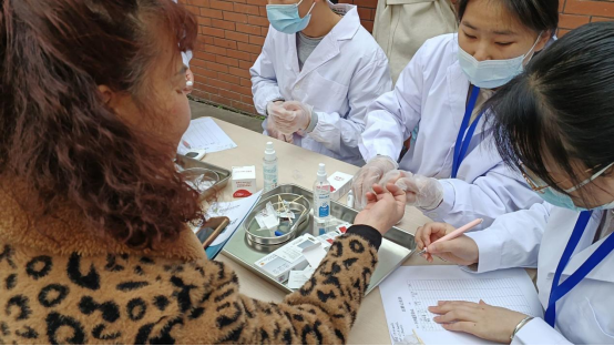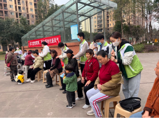 活动中,党员教师对社区居民进行“八段锦”教学,指导社区居民更规范地进行体育锻炼。志愿者们发放健康生活方式宣传单,向社会居民普及安全用电、高血压、高血糖的防治知识。同时,通过血糖、血压的测量,让社区居民更加清楚地了解到自己的健康状况。在专业按摩服务缓解社区老人们身体疲劳的同时,志愿者们向老人们积极倡导和传播合理膳食的理念,引起他们对健康饮食的关注,帮助他们采取有益于健康的饮食方式来生活。