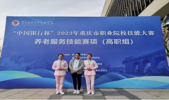 3月10日-11日,“中国银行杯”2023年重庆市职业院校技能大赛养老服务技能赛项(高职组)在重庆城市管理职业学院举行,重庆13所高职院校的26名选手参加比赛。来自护理学院2021级智慧健康养老服务与管理2班的何冰洁、易冬梅两名同学代表我校参赛,在护理学院老年社区护理教研室李科、周裕婧等老师的精心指导下,经过激烈的角逐,最终分获该赛项一等奖和二等奖。