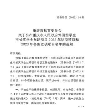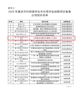 近日,重庆市教委公布了“2023年市政府外国留学生市长奖学金丝路项目”备案立项项目名单,我校申报的“中西医结合国际化管理人才培训”项目喜获立项。本次重庆本科和高职院校共立项18个项目,我校在10个获得财政经费资助的项目中排名高职院校第二位。