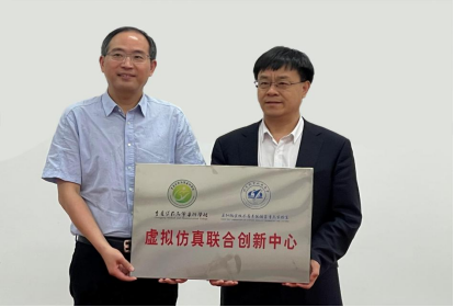 刘永生校长和郝爱民副主任代表双方揭牌“虚拟仿真联合创新中心”