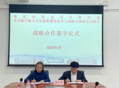 随后,何坪和郝爱民代表双方签署了战略合作协议,并正式成立“虚拟仿真联合创新中心”。双方将本着“真诚合作,优势互补,创新发展”的原则建立长期、紧密的合作关系,推动虚拟现实技术创新应用,助推医学职业教育高质量发展。