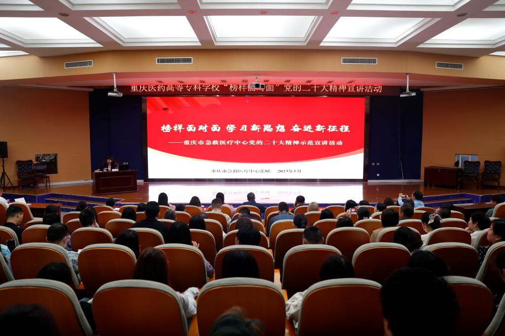 按照活动安排,学校邀请了重庆市急救医疗中心护理部副主任张晞到校作专题讲座,作为2020年全国抗击新冠肺炎疫情防控先进个人和全国优秀共产党员荣誉称号获得者,张晞主任结合自己的实际工作经历,给到会的同志做了三个方面的宣讲:第一个方面是充分认识党的二十大的重要意义;第二个方面是深刻领会党的二十大精神实质和核心要义;第三个方面是努力把党的二十大精神转化为武装头脑、指导实践、推动工作的巨大动力。与会中干和师生代表纷纷表示,“榜样面对面”这种深入基层一线开展党的二十大精神面对面宣讲的形式,为大家讲好了拥抱新时代、奋进新征程、建设新重庆的奋斗故事,让大家进一步深刻领悟了“两个确立”决定性意义,坚决做到“两个维护”,提高了政治站位。