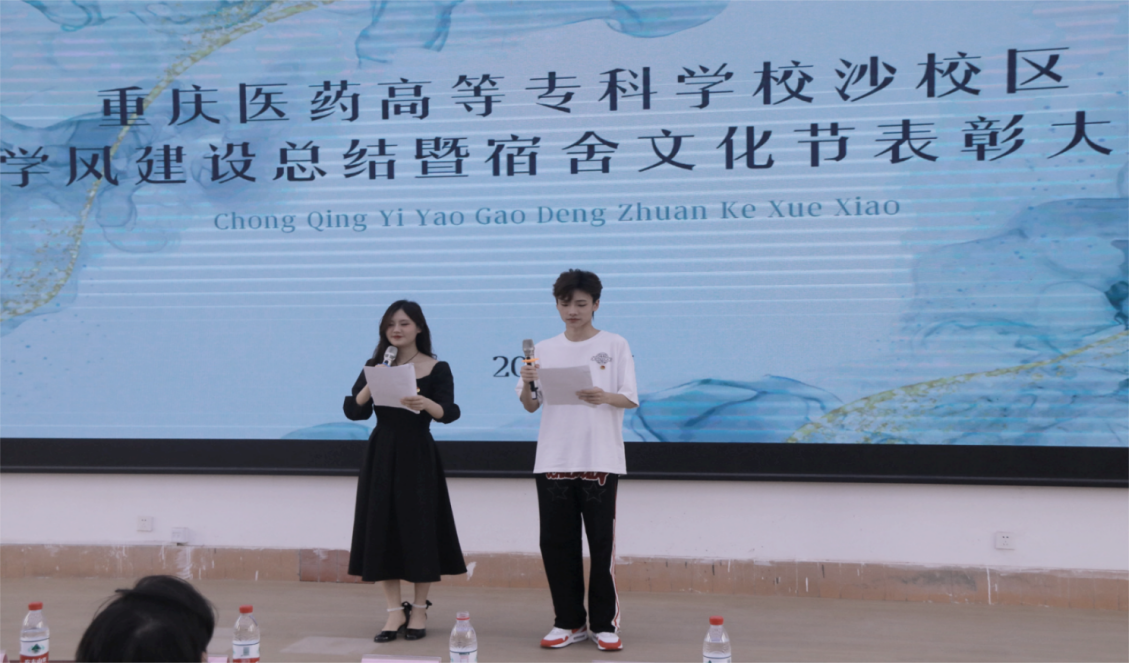 分享会结束后正式开始了学风建设暨宿舍文化节表彰大会,先是全体师生奏唱《川东军区卫校校歌》,他们高喊着青春的誓言,用歌声传递校训精神,用歌声展现对党的热爱和认可。