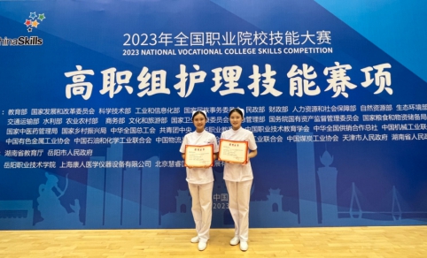 8月25日至27日,2023年全国职业院校技能大赛高职组护理技能赛项在湖南省岳阳职业技术学院举行。来自全国31个省(自治区、直辖市)的63支代表队、126名选手参加此次大赛。我校护理学院参赛选手张家乐、周玉婷同学凭借扎实的理论知识、娴熟的操作技能以及沉着稳定的发挥,最终以优异成绩荣获团体二等奖。
