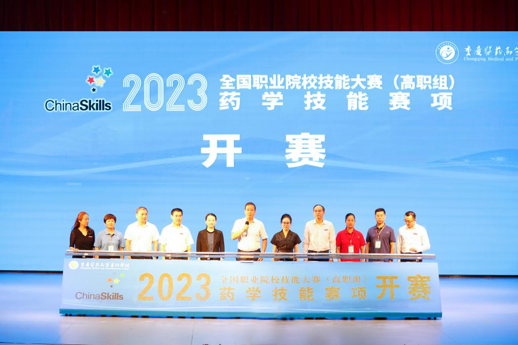 为更好贯彻党的二十大精神,推进健康中国建设,促进中医药传承创新发展,深入实施人才强国战略中大国工匠、高技能人才培养的要求。9月21日,2023年全国职业院校技能大赛(高职组)药学技能赛项在澳门电子pg游戏官网开赛,来自全国28个省市自治区53所院校的53名选手,以及专家、裁判、领队、指导教师、观摩教师等共计600余人参与。重庆市教育委员会副主任杨卫军、沙坪坝区人民政府副区长黄可欣出席开赛式,重庆医药高专校长刘永生主持开赛式。