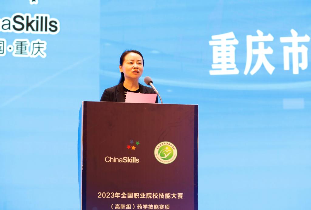 今年全国职业院校技能大赛药学技能赛项是首次举办,重庆医药高专党委书记吴海峰代表赛项承办方向大家表示热烈欢迎,他表示,学校能承办本次比赛,是各级领导和同仁对学校的充分信任,是对学校办学实力和办赛水平的认可。承办方将尽最大努力营造和谐温馨的竞赛环境,确保比赛公平、公正、公开、有序进行。他强调,学校将以大赛为契机,以赛促教、以赛促学,助力助推“三教改革”,提高岗课赛证综合育人水平,努力培养高素质应用型、复合型、创新性技术技能型药学类人才。重庆市卫健委科教处处长谢春鹰指出,全国职业院校技能大赛是检验职业教育成果的方式之一,通过大赛对药学专业职业教育发展未来定向,将发挥药师在医疗服务过程中不可或缺的作用。沙坪坝区副区长黄可欣希望各位选手遵守大赛规则,赛出水平、赛出风格、赛出和谐,她预祝各位参赛选手取得良好成绩、预祝大赛取得圆满成功。