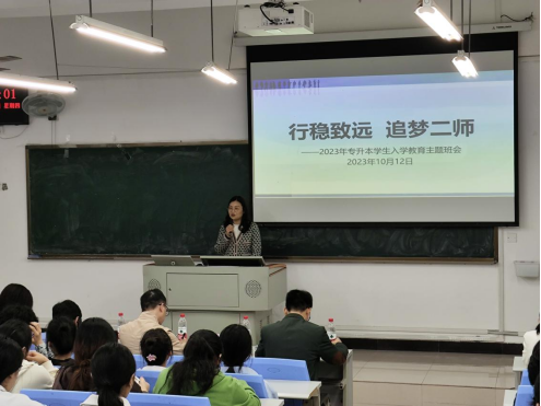 见面会上,王丽代表学校致欢迎辞,祝贺同学们顺利考上本科,欢迎同学们回到母校继续学习,希望同学们拥有梦想、不懈努力,学有所获、学有所成,珍惜友谊、携手前行。