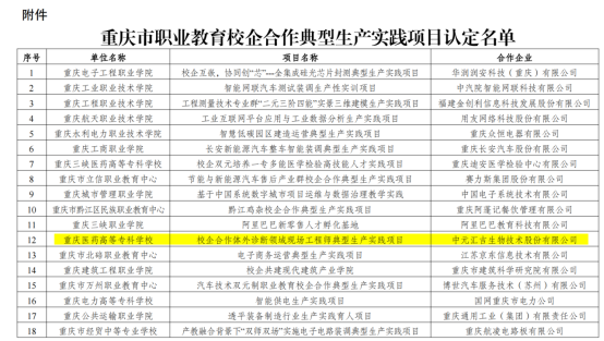 根据《教育部办公厅关于加快推进现代职业教育体系建设改革重点任务的通知》(教职成厅函〔2023〕20号)精神,经学校申报、专家评审等程序,我校“校企合作体外诊断领域现场工程师典型生产实践项目”被认定为重庆市职业教育校企合作典型生产实践项目(渝教职成函[2023]87号)。