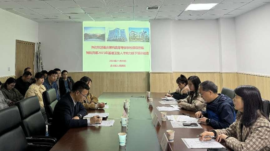按照重庆市卫生健康委对基层卫生人才能力提升培训相关工作要求,11月30日,我校继续教育学院相关人员一行5人前往合川区人民医院进行2023年基层卫生人才能力提升培训临床实践阶段督导检查,并召开座谈会。医院领导、科教科相关人员、带教老师及培训学员共计20余人参加了座谈会。