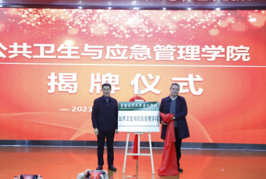 会上,学校党委副书记黄萌代表学校党委宣读了《中共澳门电子pg游戏官网委员会关于成立公共卫生与应急管理学院的通知》,正式宣布澳门电子pg游戏官网公共卫生与应急管理学院成立。澳门电子pg游戏官网党委书记吴海峰、澳门电子pg游戏官网附属第一医院党委书记邬亮共同为学院揭牌。