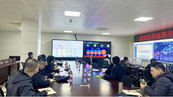 菏泽家政职业学院一行人先后参观了我校数据中心机房、综合校情数据管理中心、医护实训中心、康复实训中心、模拟GMP生产性实训基地、虚拟仿真实训中心等教学设施、基地。何坪详细介绍了我校智慧校园与虚拟仿真实训基地建设情况,展示了基础设施建设、网络安全、资源建设和数据治理等方面取得的成果。最后就信息化、实训基地建设等方面的一些经验及常见问题进行了深入交流和探讨。在深入了解了我校的建设发展情况后,菏泽家政职业学院的领导们对我校在信息化、实训基地建设方面取得的成果和经验给予了高度评价,并希望与我校达成长期项目合作,学习我校在信息化建设、实训基地建设方面取得的经验。