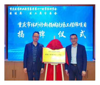 会上,澳门电子pg游戏官网副校长姜理华致欢迎辞,宣读“重庆市体外诊断领域现场工程师”项目立项文件,并与项目共建企业共同揭牌。