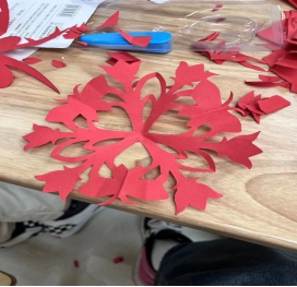 在教师党员的带领下,国际班学生积极互动、热情参与,认真了解剪纸、窗花,亲身体验用剪刀将纸剪成各种各样的图案,如窗花、墙花、灯花等,大家互相展示各自的剪纸作品,所有学生都沉浸在充满乐趣的活动中。