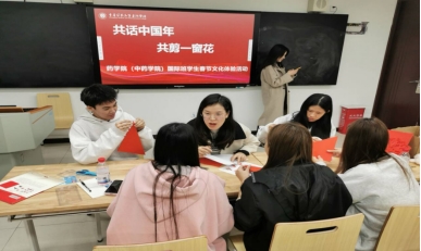 中华传统文化剪纸艺术是最古老的中国民间艺术之一,作为一种镂空艺术,它能给人视觉上以透空的感觉和艺术享受。12月4日,药学院(中药学院)党总支书记杨宗发、专职副书记薛惠元、教师党员们深入国际学生群体,与大家同坐一团,共同感受剪纸艺术的魅力,动手体验剪纸的乐趣。