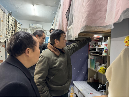 1月5日上午,学校党委副书记黄萌带队对学生宿舍、辅导员办公室进行消防安全复查,保卫处主要负责人陪同。