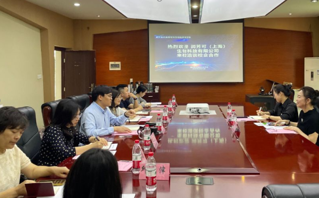 4月19日上午,润芳可(上海)生物科技有限公司副总裁张叶莉一行来校洽谈校企合作事宜。学校党委委员、副校长兰作平出席会议。教务处、招生就业处、临床学院相关部门人员参与座谈。会议由临床医学院主持工作副院长谭丽主持。