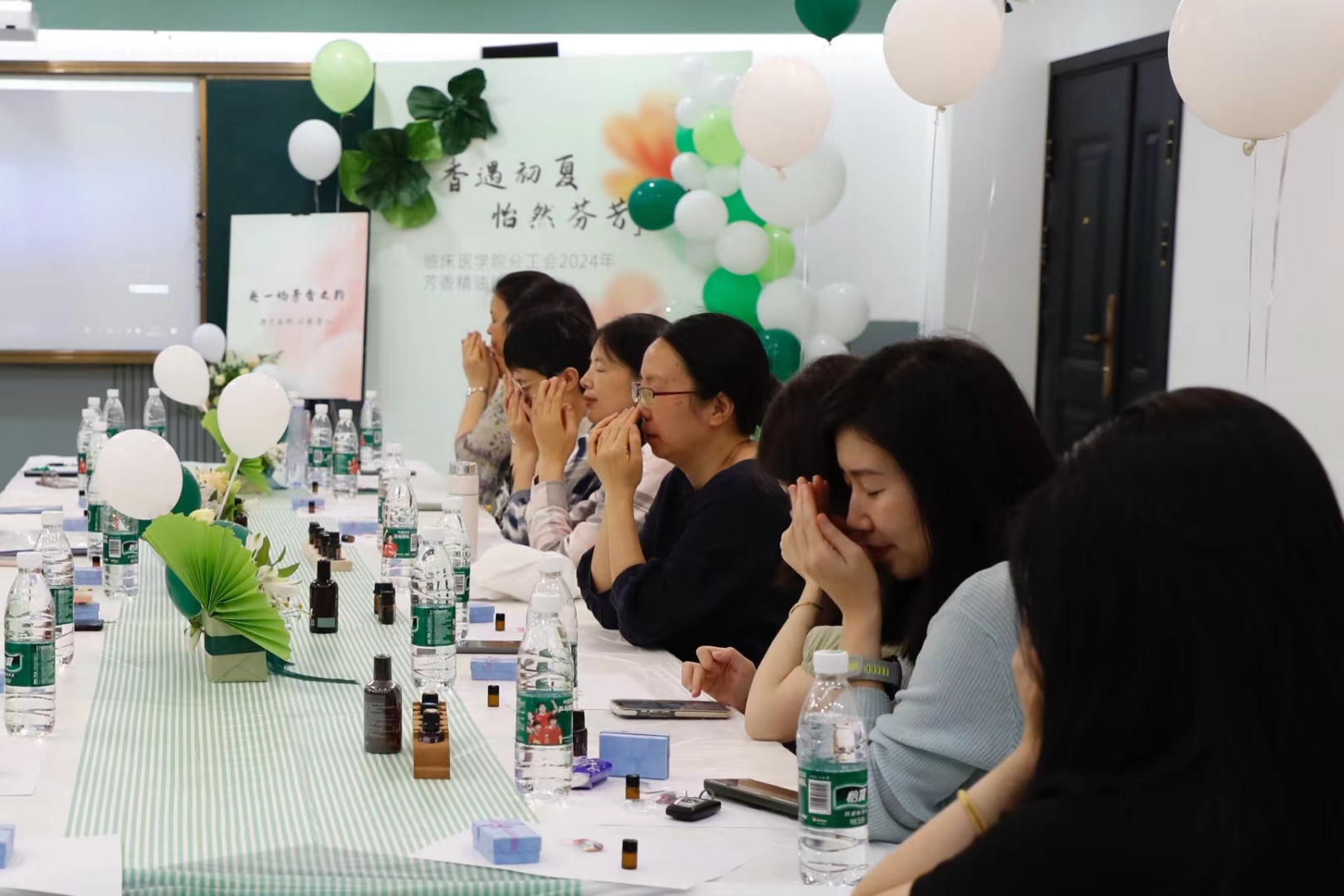 为推动工会创新发展,丰富女职工精神文化生活,提升女职工综合素养,5月23日,我校临床医学院分工会根据学校妇委会工作安排,结合学院自身专业特色,在2号实训楼开展“香遇初夏 怡然芬芳”主题精油沙龙活动。