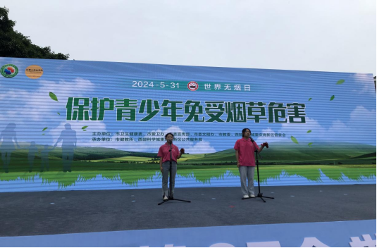 为贯彻《重庆市公共场所控制吸烟条例》,倡导无烟生活的健康理念,履行未成年人免受烟草侵害的社会责任,5月30日,重庆市卫健委、市爱卫办在高新区大学城熙街开展了第37个“世界无烟日”主题活动。学校禁毒防艾宣讲团应邀参加,并现场展示了音乐快板《戒烟歌》。宣讲团成员用群众喜闻乐见的演出形式,向市民科普宣传吸烟的危害和控烟的知识,引领市民群众主动拒绝并远离烟草,培养健康生活方式。