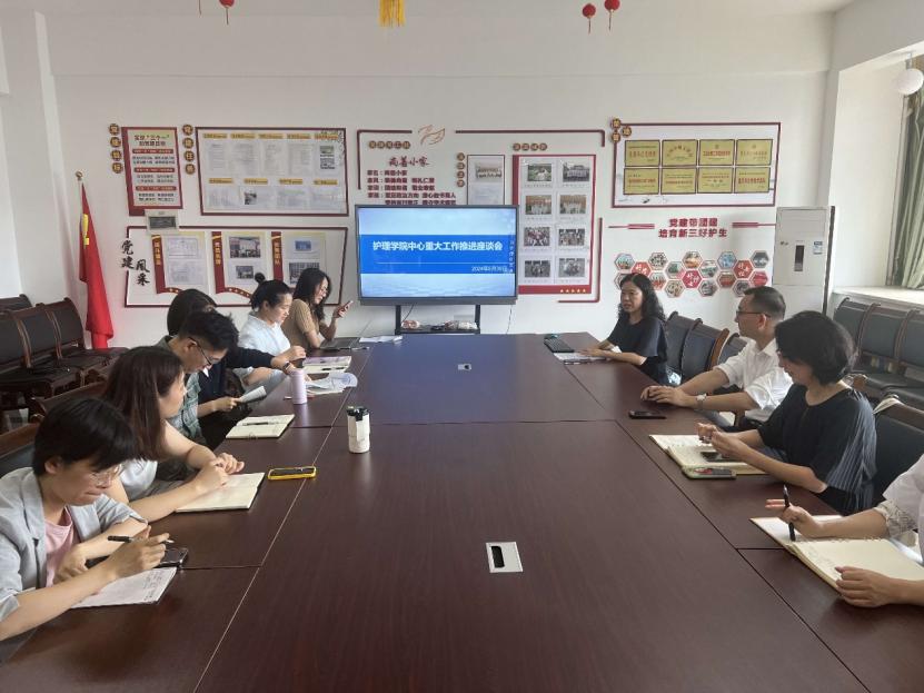 5月30日下午,副校长姜理华参加护理学院中心重大工作推进座谈会并指导工作,护理学院党总支书记杨海英、院长唐万珍、副院长刘善丽以及相应三级部门负责人、教研室主任、专业带头人参加本次会议。