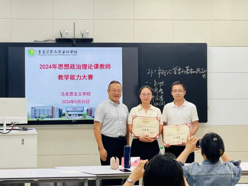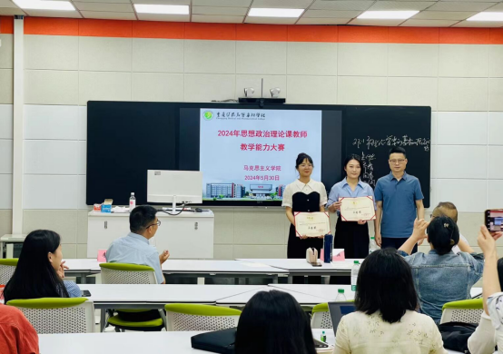 为展现新时代思想政治理论课的新气象新作为,进一步提升思政课教师队伍建设水平,近日,学校举行了2024年思想政治理论课教师教学能力大赛。重庆交通大学李海峰教授、重庆大学魏强教授担任评委,马克思主义学院全体教师参加了本次活动。