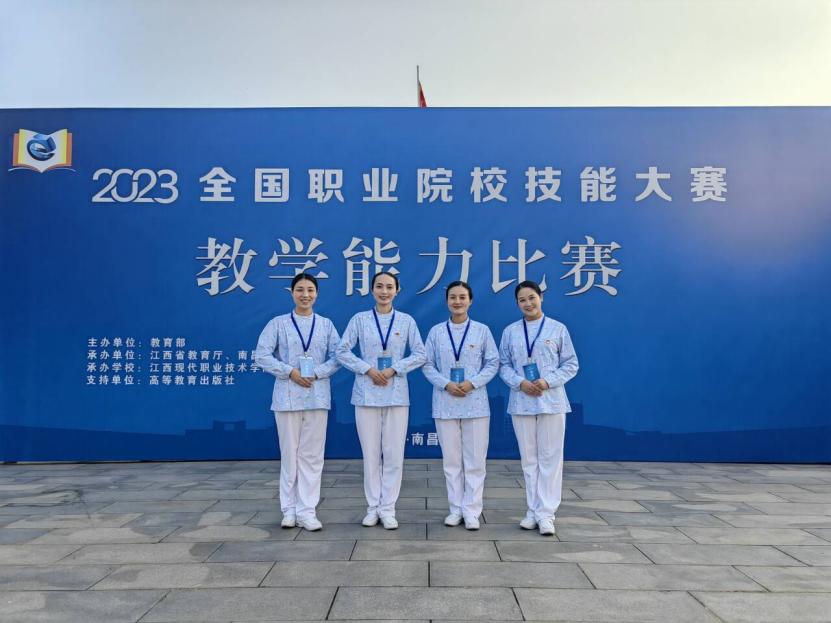 本赛项重点考察团队成员对课程中教学内容,完成教学设计、实施课堂教学、达成教学目标、进行反思改进的能力。四位老师赛后总结中提到,团队成绩是在学校保障,学院支持,学生助力,团队凝心聚力下形成的成果,教学能力比赛既是对日常教学理念、教学方法、教学资源的再现,更是对教师素质素养的考验,要求护理教师要眼中有学生,心中有大爱,手里有技能,胸中有情怀,才能真正实现综合育人,促进学生全面发展、技能成才。