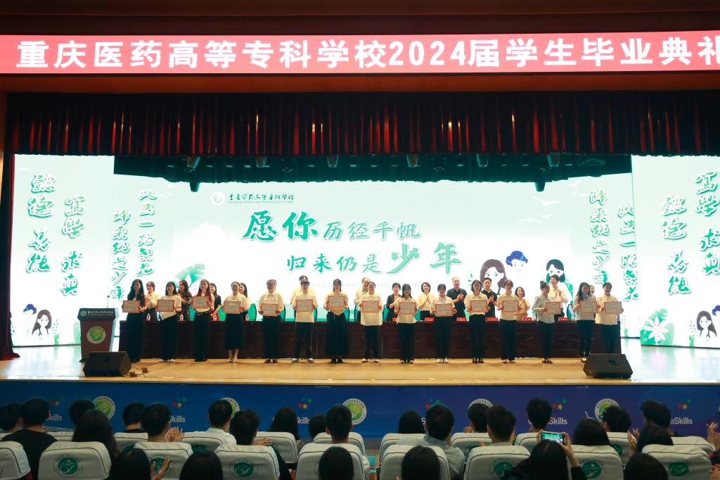 在庄严的国歌声中,毕业典礼正式开始。副校长兰作平宣读《关于2024届学生毕业的决定》,纪委书记周刘丽宣读《关于2024届学生荣获国家奖学金、重庆市优秀毕业生的通报》,党委副书记张新宣读《关于2024届学生荣获重庆市先进集体、先进个人的通报》。随后,学校领导和教师代表为毕业生代表颁发毕业证书和纪念品,为获奖毕业生代表颁发荣誉证书。