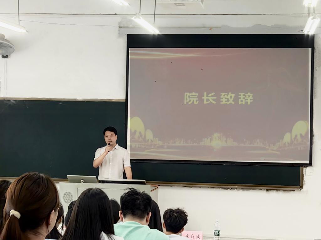在新生见面会上,公共卫生与应急管理学院直属党支部书记黄舟代表学院全体教职工向新同学至以热情洋溢的欢迎辞。希望同学们在大学校园里保持对知识的敬畏,对未来的憧憬,对成长的期待,厚植公卫情怀,勇担时代使命。保有情怀,担当使命,责任是根本、情怀是核心、情操是底色。期待2024级新同学们能够赓续公卫人的精神血脉,始终胸怀家国责任、练就过硬本领、锤炼品德修为,用奋斗擦亮青春底色,不负今日、不负时代,为后疫情时代的祖国公共卫生事业贡献新生力量。