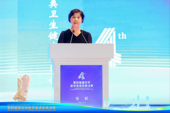 9月13日下午,第四届重庆市医学英语竞赛决赛在我校成功举办。学校党委副书记张新致欢迎辞。她表示,医学英语是深化交流合作,提升涉外医疗服务能力,服务内陆开放国际合作引领区建设的“船”和“桥”。该赛事已成为全市医护人员展示“硬实力”,展现“国际范”,提升“辨识度”的舞台。