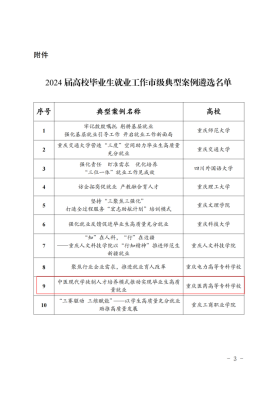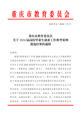近日,重庆市教育委员会在全市高校范围内开展了毕业生就业工作典型案例遴选工作。学校招生就业处组织二级学院紧密结合医药行业的特点和需求,以专业特色为切入点,深挖具有代表性的就业工作典型案例。经过学院自主申报、学校专家严格评审,推荐中医学院报送的案例参加市教委评选。经专家评审,市教委从48所高校报送的典型案例中遴选出市级典型案例10个,我校报送的《中医现代学徒制人才培养模式推动实现毕业生高质量就业》获评重庆市2024届高校毕业生就业工作典型案例(全市仅3所高职高专院校入选)。10月起,市教委将通过重庆教育等平台对市级典型案例开展系列宣传。