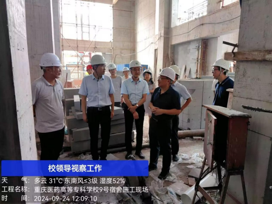 9月24日,学校党委书记、校长刘永生带队到九龙坡校区改造项目和9号学生宿舍项目等重点在建项目开展现场督查。党委委员、副校长姜理华陪同,相关职能处室负责人参加督查。